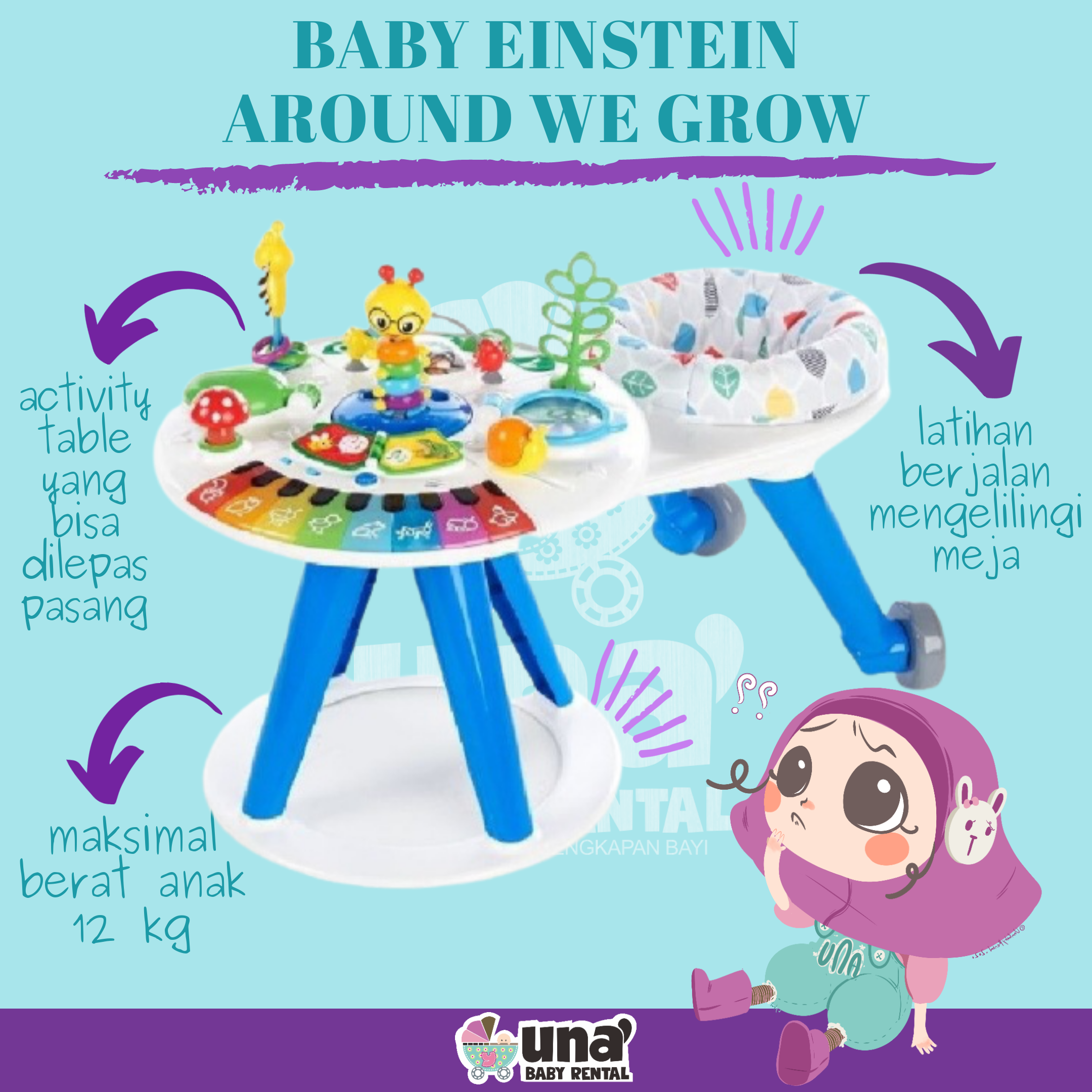 *Kursi yang dapat diatur ketinggiannya, berjalan 360 ° mengelilingi meja, mendukung langkah pertama bayi