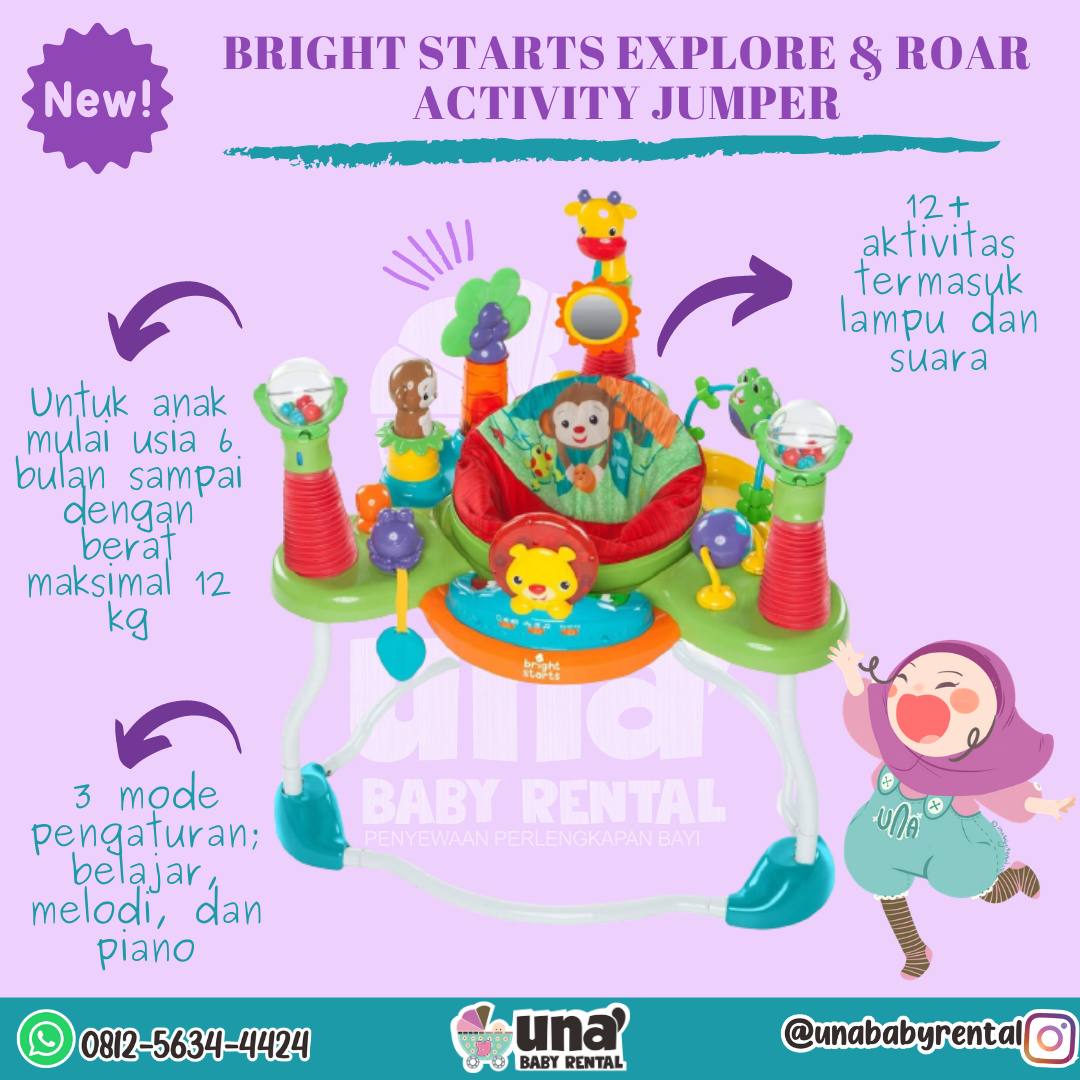 Jumperoo dari brand Bright Starts dengan desain bertema hewan hewan hutan.