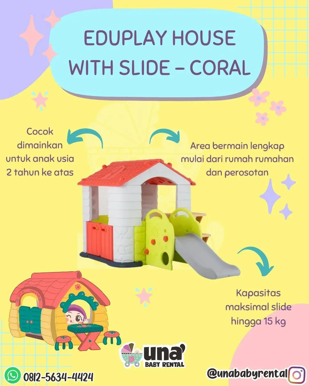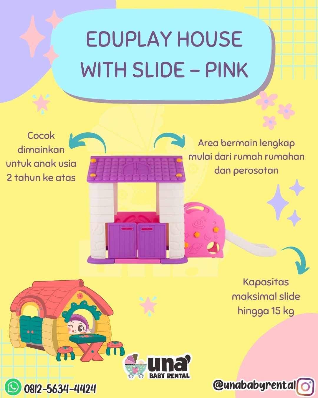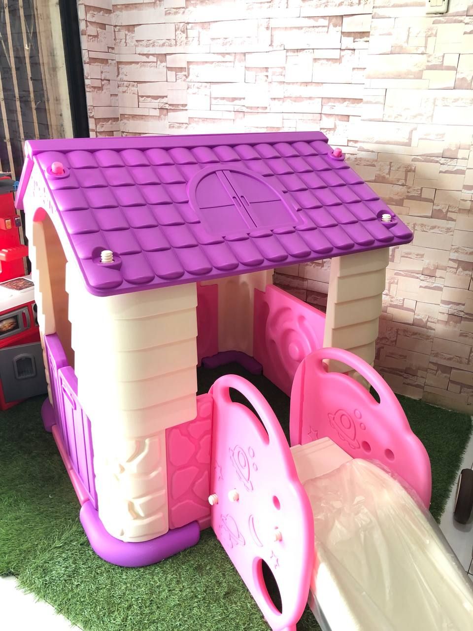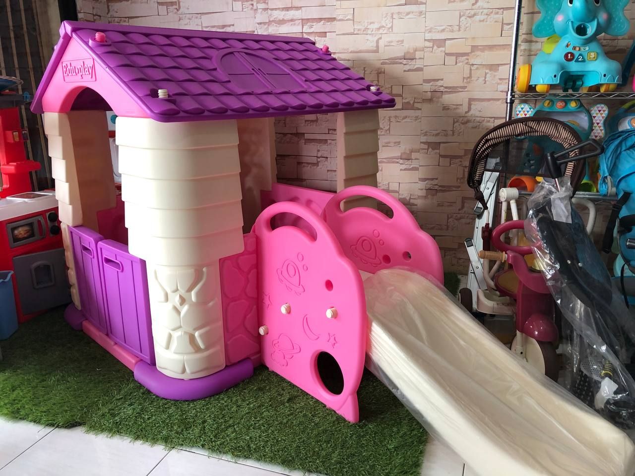 Mainan rumah rumahan yang dilengkapi dengan perosotan landai. Maksimum beban perosotan adalah 15 kg.