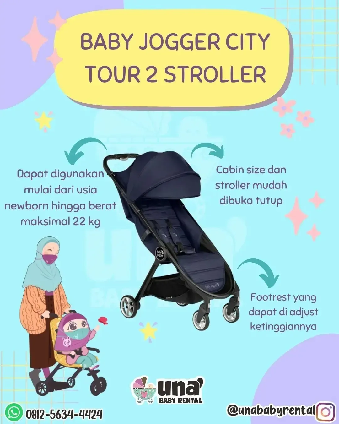Stroller cabin size untuk bayi usia newborn hingga berat maksimal 22 kg.