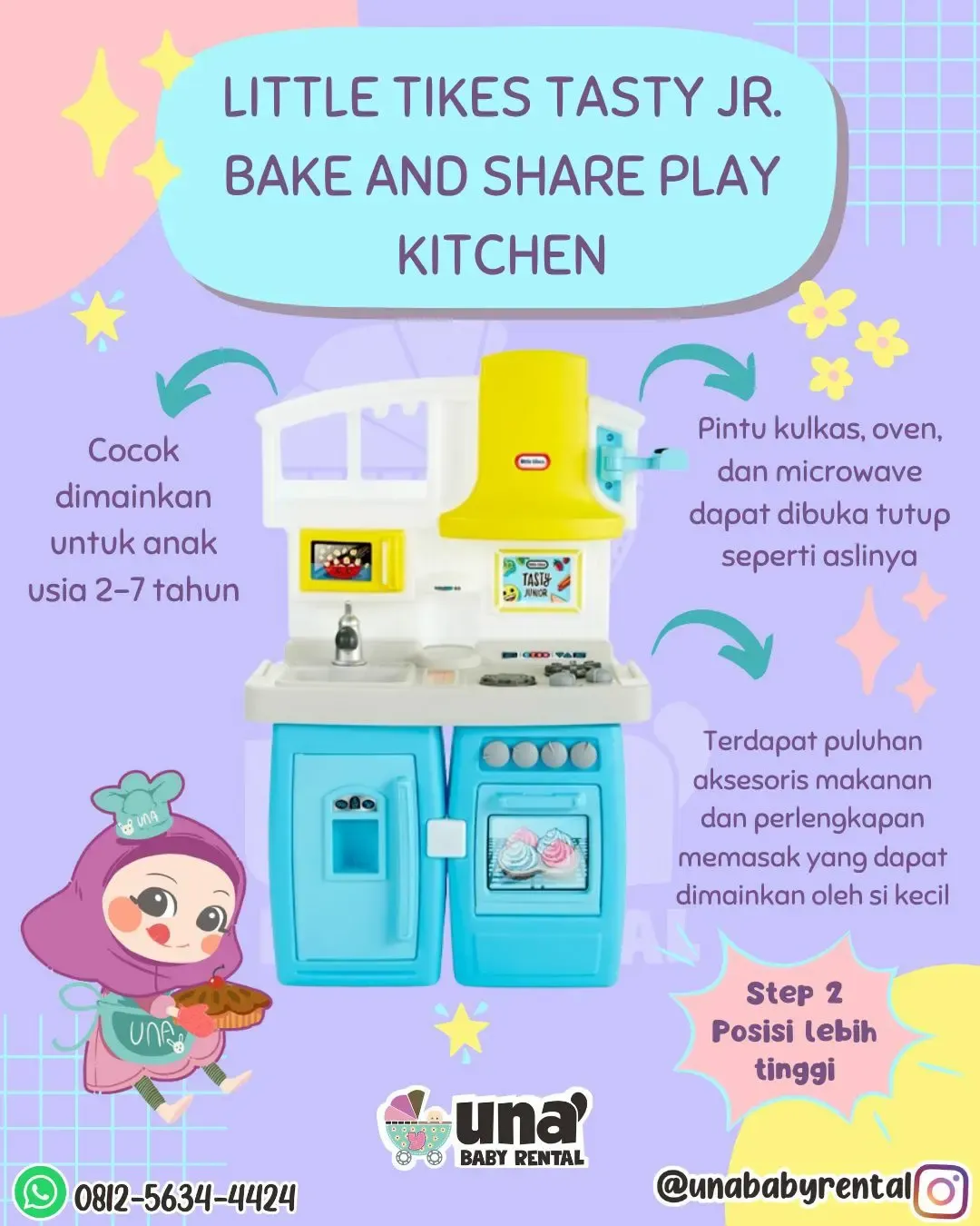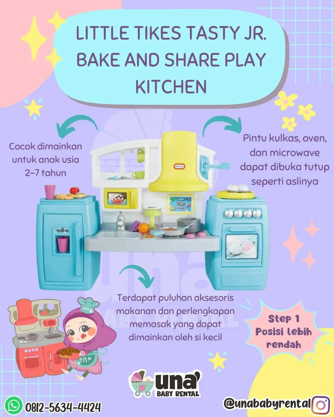 Mainan untuk anak usia 2-7 tahun. Dilengkapi berbagai aksesori mainan agar si kecil bisa mengeksplorasi. Bisa dimainkan anak perempuan ataupun laki laki (unisex)