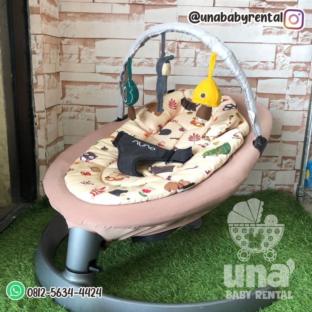 Bouncer Nuna dengan kaki lengkung dan bantalan kepala tambahan.
